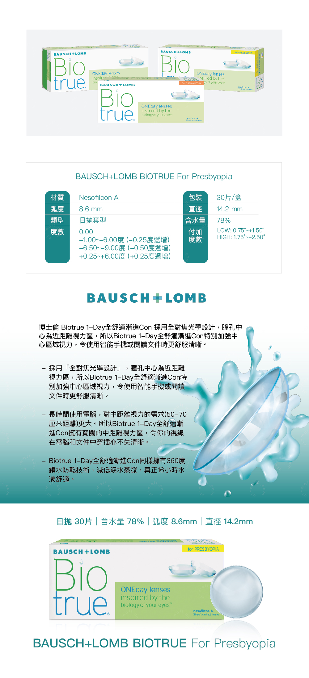 B&L|Biotrue For Presbyopia (Transparent Daily)