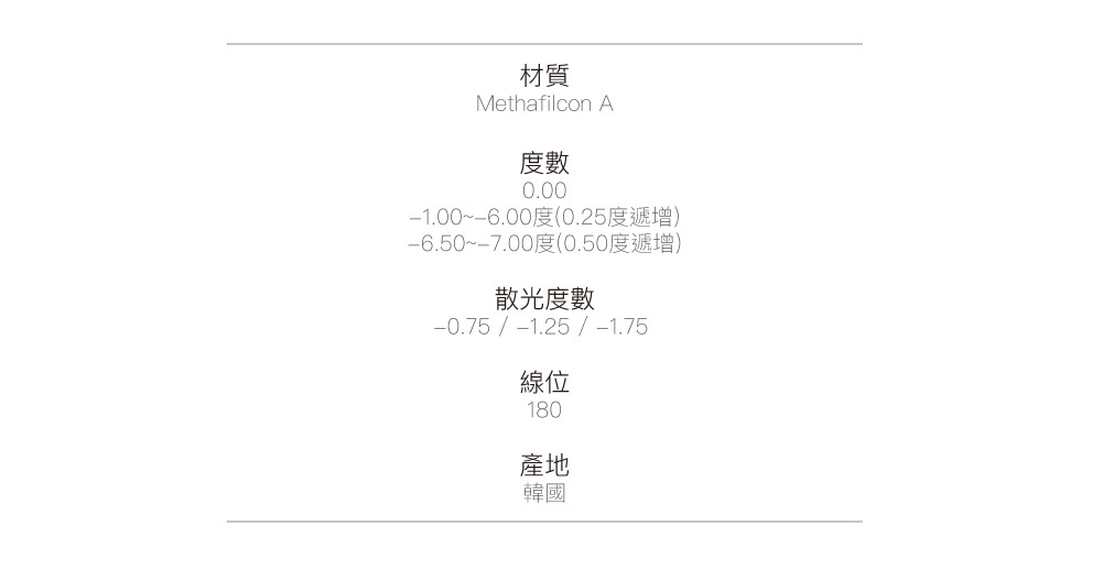 **with -0.75 / -1.25 / -1.75 toric power|AXIS only 180