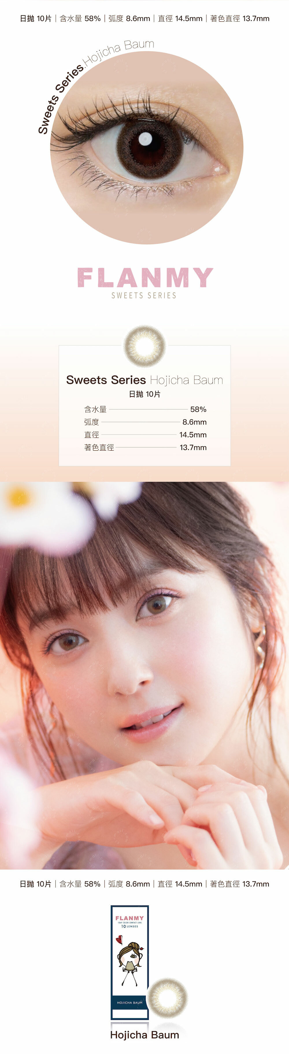 Daily|Water Content 58%|B.C 8.6mm|DIA14.5mm|G.DIA13.7mm|Material HEMA|Made in TaiWan|Packing 10pcs per box