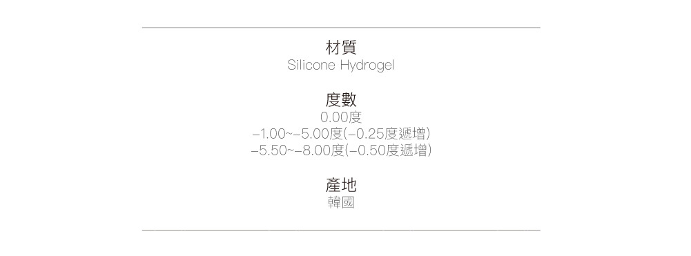 Daily|Water Content 43%|B.C 8.8mm|DIA14.3mm|G.DIA13.4mm|Material Silicone Hydrogel|Packing 20pcs per box