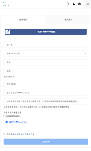 - 可以使用電郵地址 / 電話號碼 / FACEBOOK 註冊成為會員