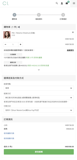 - 按右上角購物籃,即可到購物籃頁面中結帳