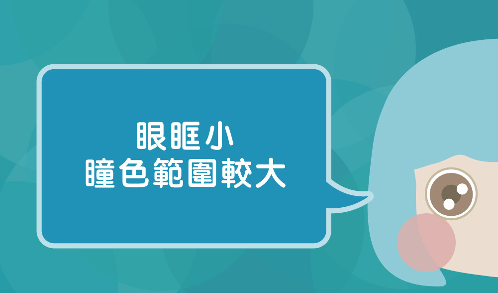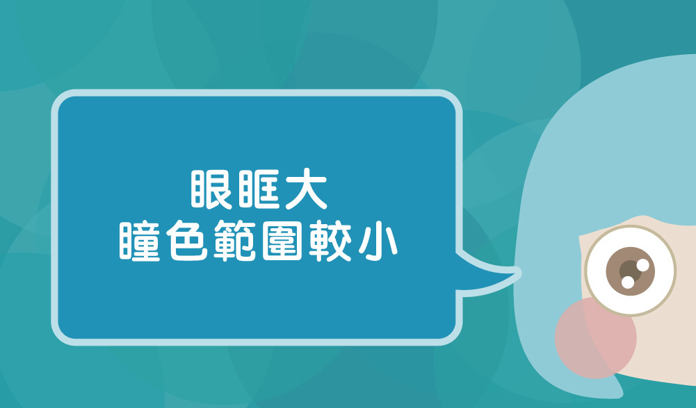 眼眶大而瞳色範圍較小,會顯得眼睛小,欠缺精神。