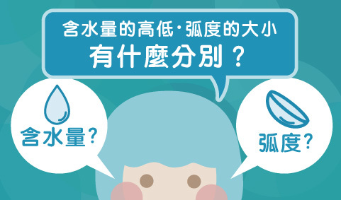 解答6)含水量(Water Content)就是指鏡片的水分比例。我們一般都會認為,含水量越高,就會越舒服,但其實不是這樣!如果本身眼睛容易乾澀,或是長時間待在乾燥的環境(例如:冷氣房),又使用高含水量的隱形眼鏡,隱形眼鏡會吸收眼睛中的水分,同時這些水分也會蒸發至空氣中,導致隱形眼鏡更容易乾燥,進而引致眼睛乾澀不適。因此,如果本身眼睛淚液較少,容易眼乾,或者配戴的時間較長,就應盡量選擇含水量較低的隱影眼鏡;相反,如果眼睛淚液較多,配戴的時間也比較短,則應該選擇含水量較高的隱形眼鏡。